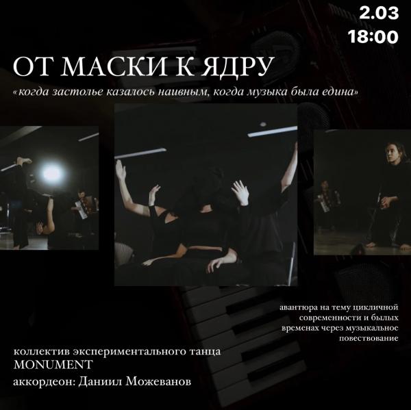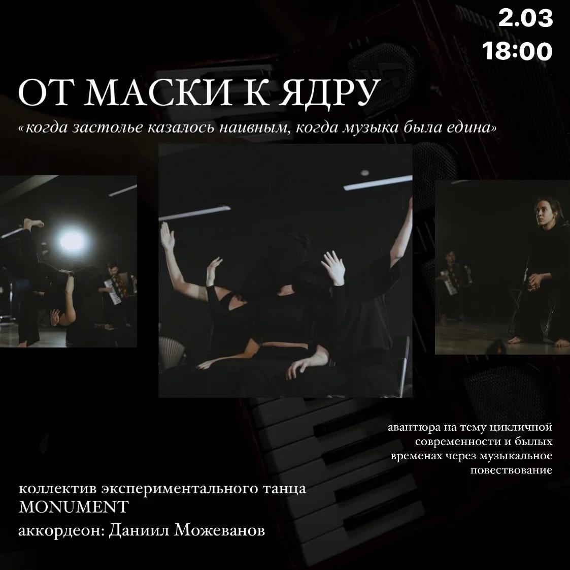 В Музее Андеграунда покажут танцевальную авантюру на тему цикличности жизни через музыкальное повествование. На сцене выступит команда экспериментального танца «MONUMENT».