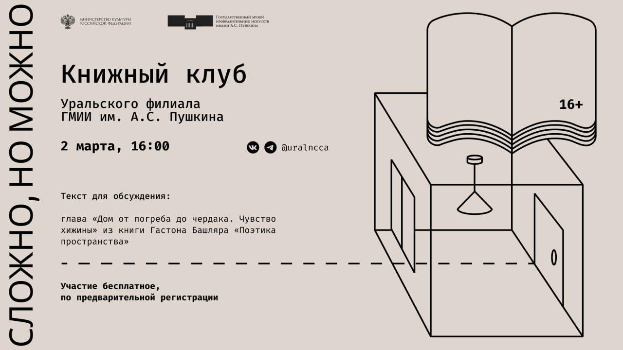В Уральском филиале ГМИИ им. Пушкина (ГЦСИ) стартуют встречи нового книжного клуба «Сложно, но можно». Проект будет построен вокруг коллекции нон-фикшн литературы центра, в которой находятся тексты современных философов и исследователей прошлого и настоящего.