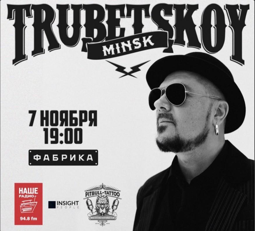 В клубе «Фабрика» пройдет большой концерт наследников белорусской группы «Ляпис Трубецкой». В группе «Trubetskoy» объединились несколько экс-«ляпистов» во главе с вакалистом Павлом Булатниковым. Слушателей ждут легендарные хиты: от «Евпатории» и «Ты кинула» до «Котика» и «Харэ».