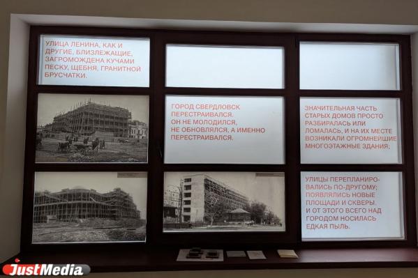 После рассказа про историю двухцветного зала, корреспонденту JustMedia.ru удалось побывать на выставке «Работать и жить. Свердловск». Во время нее куратор Александр Думчиков рассказал о архитектурно-строительном и промышленном скачке роста Свердловска во времена власти советов в 20-х и 30-х годах прошлого столетия. Удалось воочию лицезреть копии фотографий, чертежей и планов из фондов музея истории Екатеринбурга, которые теперь также доступны любому посетителю музея.