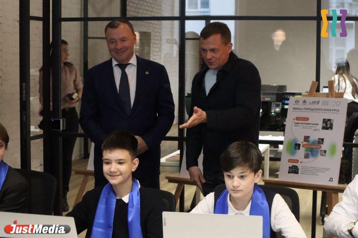 Глава Екатеринбурга Алексей Орлов на открытом уроке технологии по созданию мерча.
