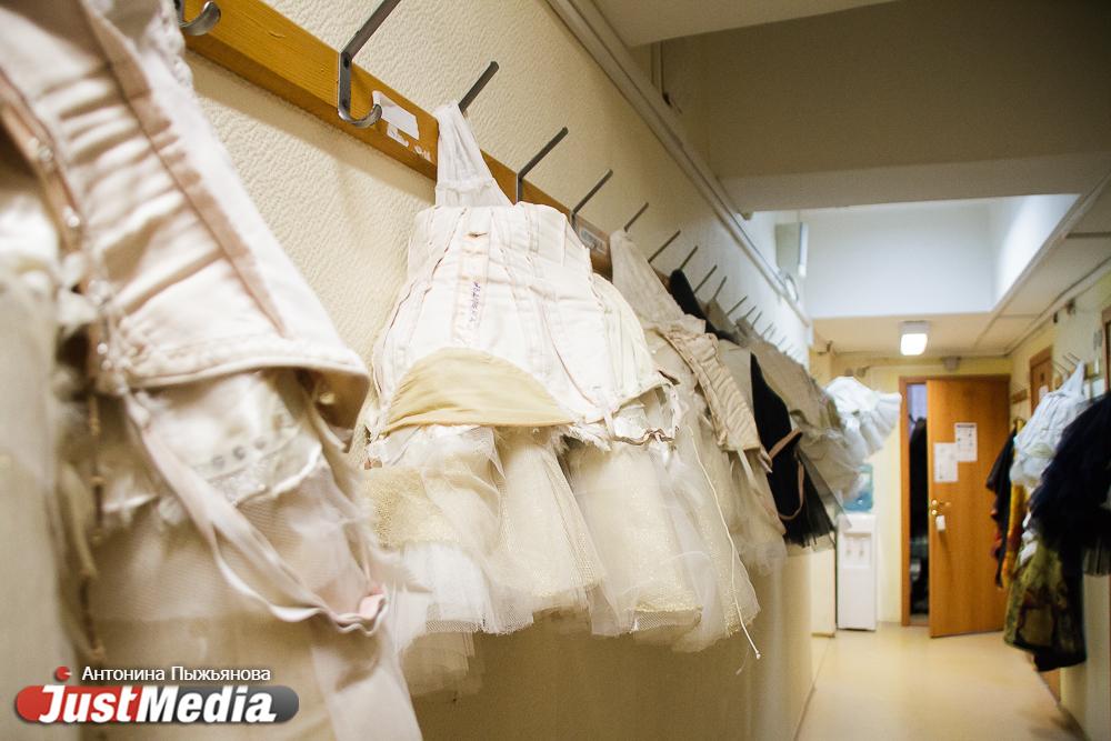 Костюмы можно увидеть и в коридорах. Некоторые здесь сохнут, например, пачки после вчерашнего балета,а другие уже приготовлены для спектакля на завтра.