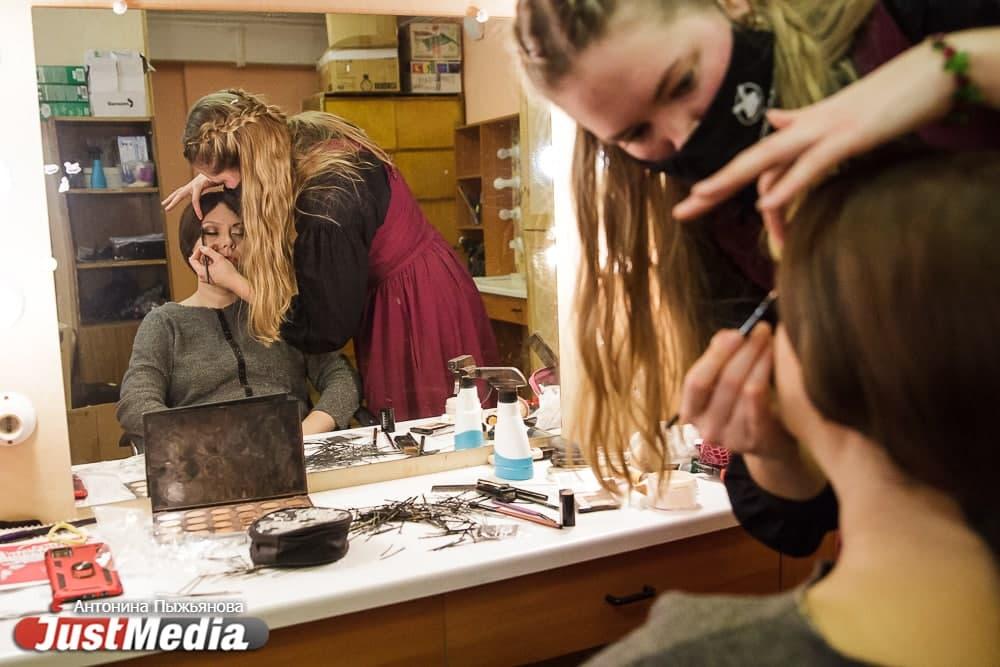 Одеваться и наносить грим артисты начинают за час. И после того им уже нельзя выйти в буфет или на улицу.