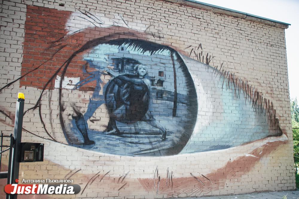 Еще один проект находится на водонасосная станции на Решетникова, 14 "а". Для того, чтобы нарисовать этот стрит арт художник Виталий Бандык приехал в Екатеринбург из Перми. Эту работу можно назвать первой масштабной для автора.