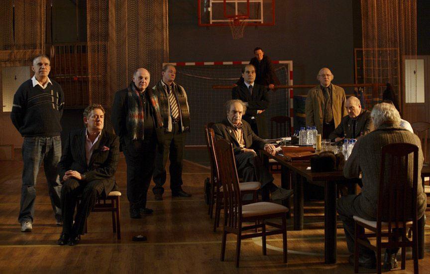 Фильм Никиты Михалкова, в котором он играет одну из главных ролей. По сюжету 12 присяжных решают судьбу 18-летнего юноши, убившего своего отчима, офицера российской армии, воевавшего в Чечне. Собравшимся предстоит единогласно проголосовать за то или иное решение. Сначала присяжные уверены, что это дело не займет у них много времени. Однако потом для каждого из них этот вопрос становится не таким однозначным.
