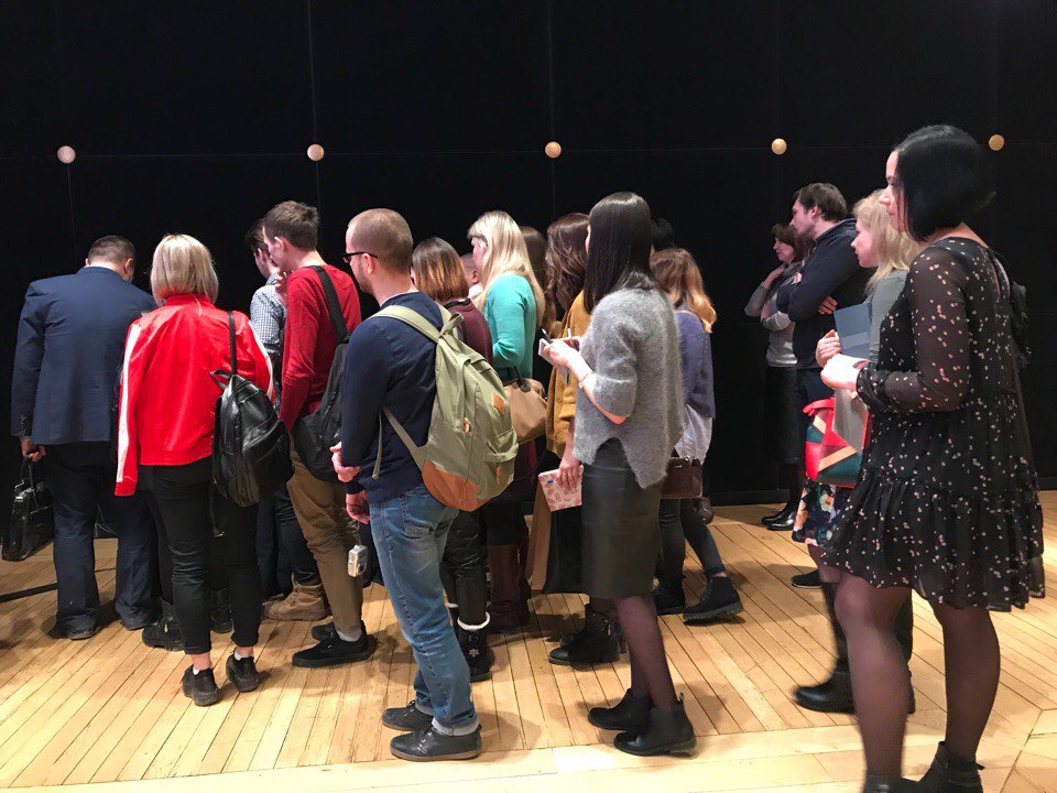 Мероприятие стартовало на полчаса позже. Зайдя в зал, Андрей Звягинцев сразу отшутился, отметив, что встреча началась сразу, как только он начал искать вход в здание.