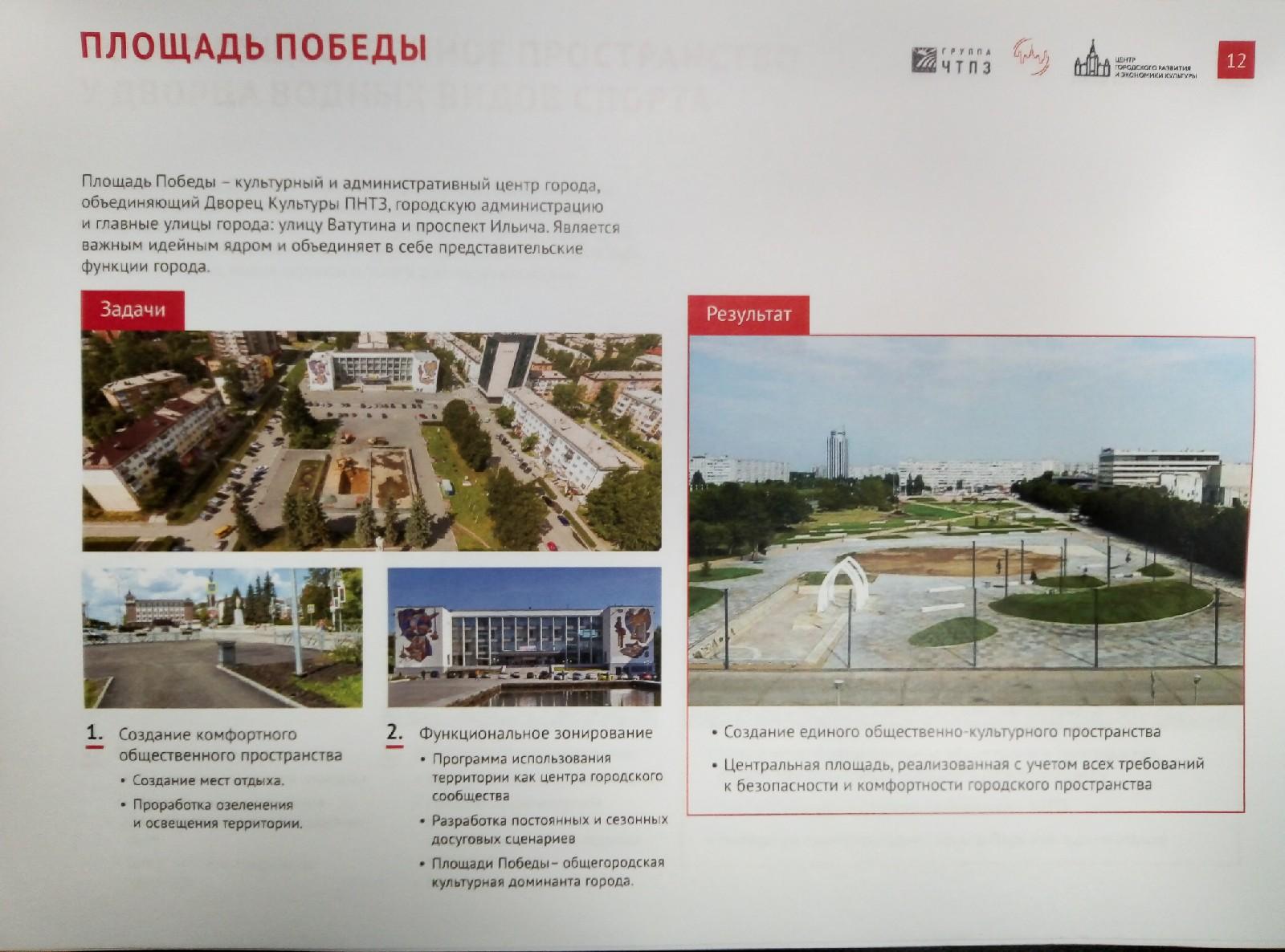Программу представил бывший вице-мэр Москвы, руководитель Центра аналитики города Сергей Капков. Документ предусматривает создание концепции качественной среды для населения, преобразование общественных пространств, привлечение в город предпринимателей и рабочих. Для поддержания имиджа бренда «Первоуральск – город трубников!» дизайнеры предложили использовать при благоустройстве яркие элементы из труб.