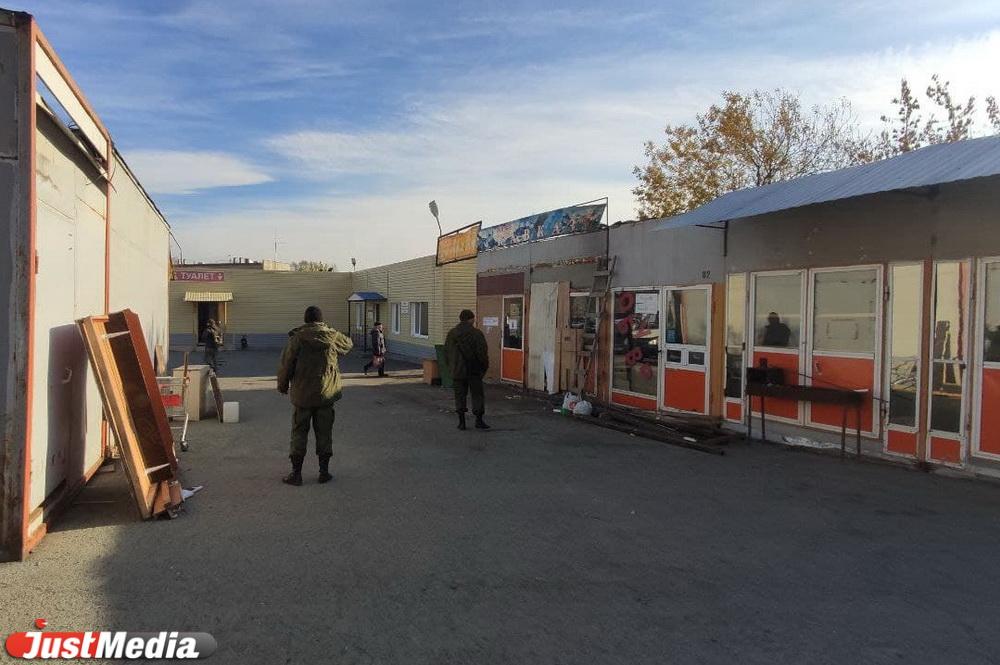 На рынке также работают оперативники главного управления криминалистики СК России. Мужчины в камуфляже фотографируют контейнеры.