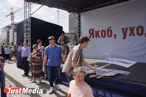 Приглашенный шансонье, по совместительству худрук Театра эстрады, сосед и друг губернатора Александр Новиков покричал избитые лозунги, призывающие к свержению городской власти и спел под фонограмму песню про Екатеринбург, в котором «замочили Николашку».