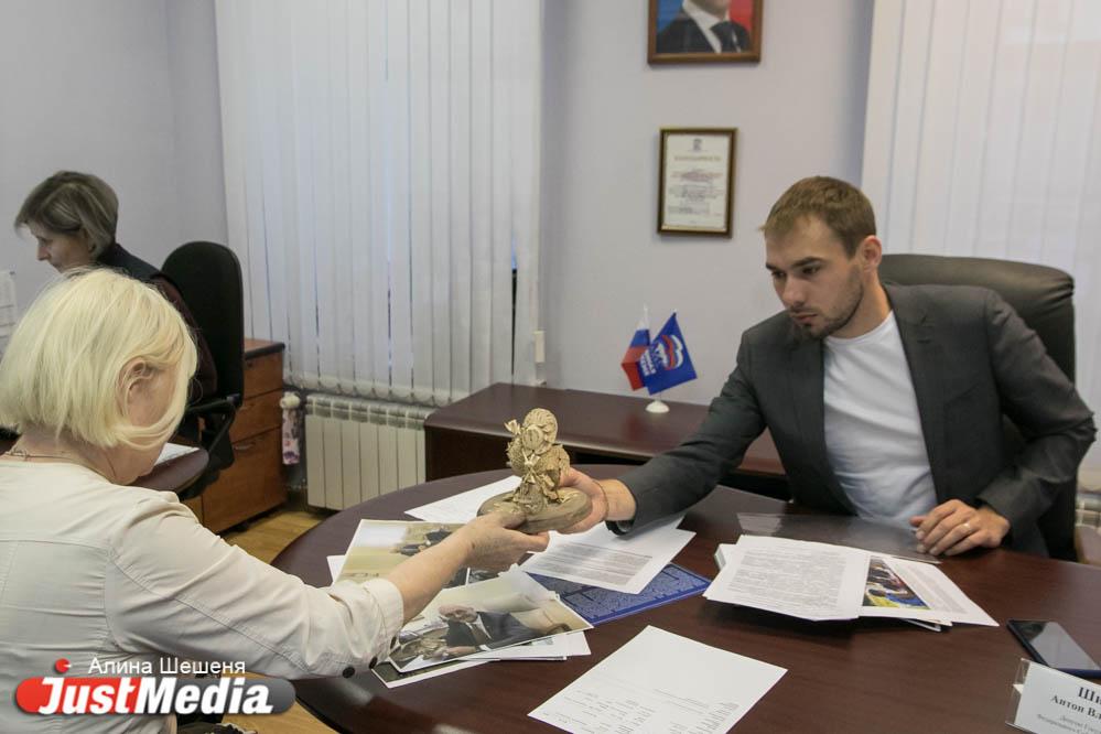 Последние три вопроса касались денежной помощи. Создательница творческого коллектива «Филигранная береста» Вера Леонтьева попросила у депутата 150 000 рублей на реставрацию экспозиции «Под крылом Жар-птицы» и продолжение работы мастерской. Ранее губернатор Свердловской области Евгений Куйвашев помог вывезти женщине поделки из гаражей, но выяснилось, что на ежах выросли грибы. Теперь на восстановление поделок нужны деньги.