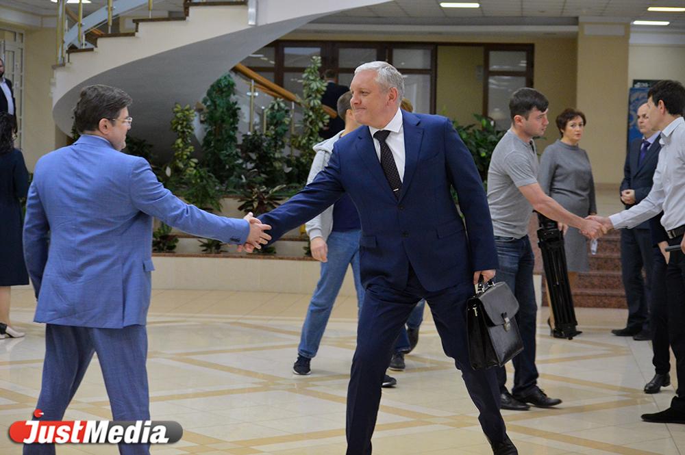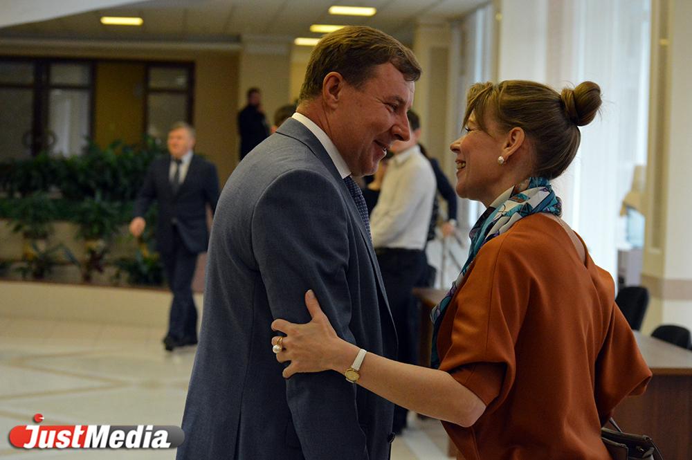 С официальными речами выступили зам полпреда президента в УрФО Борис Кириллов, врио руководителя администрации губернатора Азат Салихов и спикер свердловского заксобрания Людмила Бабушкина. На мероприятие также пришли областные депутаты – им просто нужно было перейти в соседнее здание. Первый зампредседателя свердловского заксобрания Виктор Шептий зашел в зал вместе с региональными парламентариями Вячеславом Вегнером и Михаилом Зубаревым. Свердловские депутаты долго не могли выбрать ряд и в итоге решили пройти на второй.