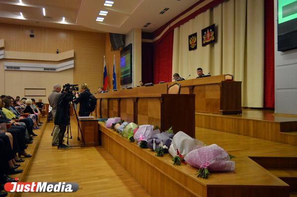 Вручать удостоверения начали с одномандатников, потом перешли к списочникам. Организаторы мероприятия подготовили цветы для 7 женщин-депутатов, но первый букет получил Сергей Мелехин, у которого сегодня день рождения. Одна из самых старших по возрасту депутатов ЕГД Любовь Боркова (старейший депутат в гордуме – Галина Арбузова, 1947 года рождения, она на 2 месяца старше Любови Борковой, – прим.ред) после вручения мандата развернулась к трибуне и в знак благодарности пожала руку Азату Салихову и Борису Кириллову. Эту традицию подхватили и другие депутаты.