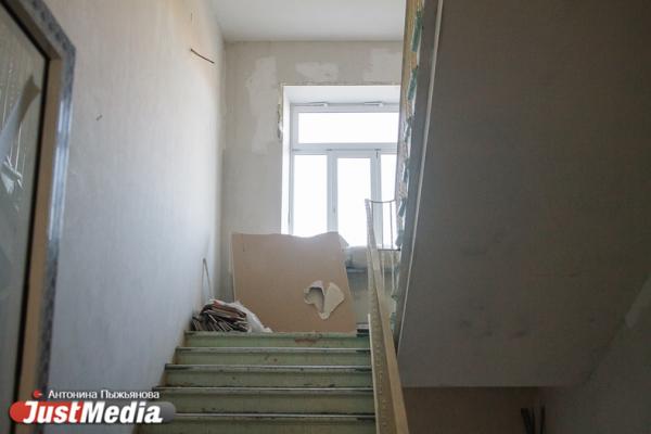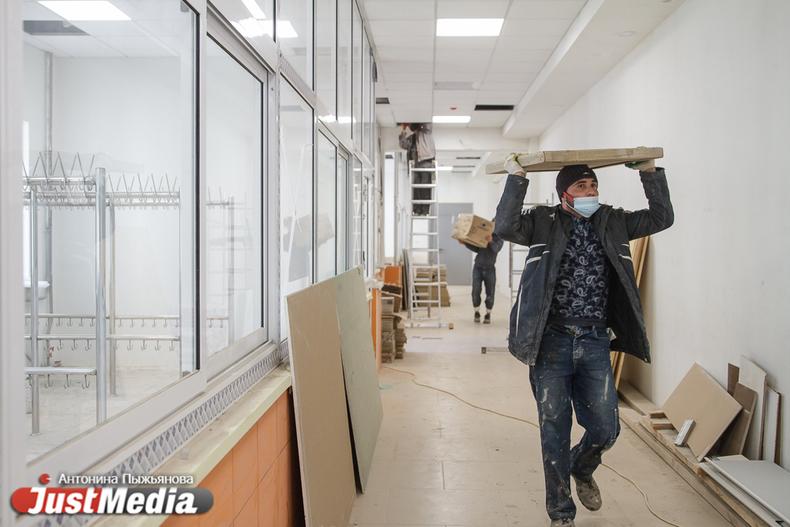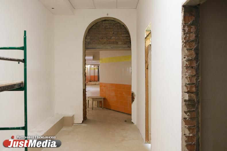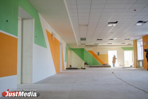 – Здесь будет стоять система доступа в школу и два турникета. Раздевалки у нас будут расположены с двух сторон: одна для младшей, другая для старшей школы, – рассказывает, идя по первому этажу, замгендиректора ЗАО «Стройкомплекс» Георгий Полевщиков, – Тут будет спортзал, а здесь раздевалки и душевые, – продолжает он проводить экскурсию.