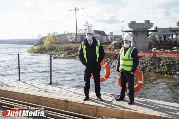 Вновь говорит о своих достижениях глава города уже во время прогулки по строящемуся мосту через Нижнетагильский пруд. Руководитель проектов ООО «АльмакорГруп» Вячеслав Назаров разговаривает по телефону, что явно не нравится мэру.