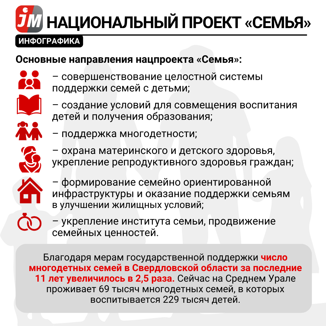 Благодаря мерам государственной поддержки число многодетных семей в Свердловской области за последние 11 лет увеличилось в 2,5 раза. Сейчас на Среднем Урале проживает 69 тысяч многодетных семей, в которых воспитывается 229 тысяч детей.
