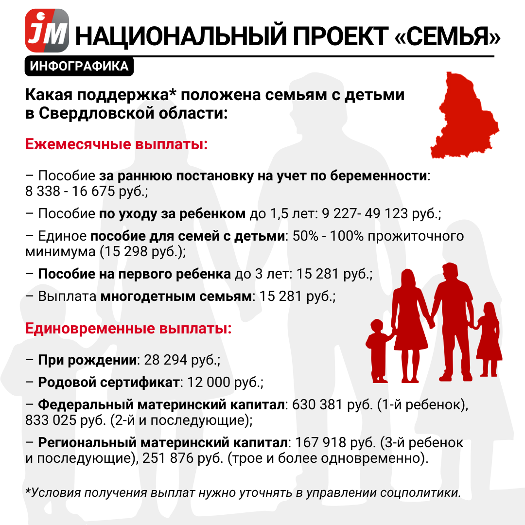 Размер выплаты равен региональному прожиточному минимуму на детей, в Свердловской области он составляет 15 281 рубль.