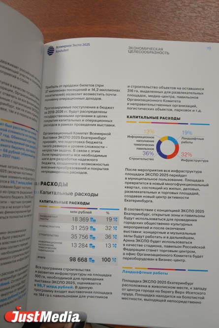 Меньше отличий можно найти в заявочных книгах на ЭКСПО-2020 и ЭКСПО-2025: обе они состоят из трех томов, оформление также сильно не изменилось. Затраты на строительство инфраструктуры и подготовку Екатеринбурга к ЭКСПО, по сравнению с прошлой заявкой, остались практически прежними — они составят около 150 млрд рублей. Из них 31,3 млрд рублей уйдет на создание парковок и дорог, озеленение и освещение территории ЭКСПО-городка на ВИЗе. Еще 38 млрд рублей планируют направить на создание павильонов и других конструкций ЭКСПО-парка. А вот площадь, на которой размесится ЭКСПО-городок, решено увеличить на 5 га, 60% тут займут озелененные площадки, широкие дороги и пешеходные маршрута. Павильоны, оставшиеся от всемирной выставки, будут использоваться как обычная городская инфраструктура.