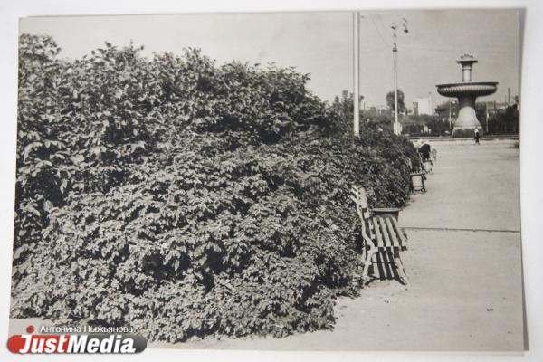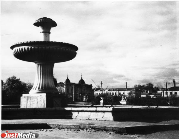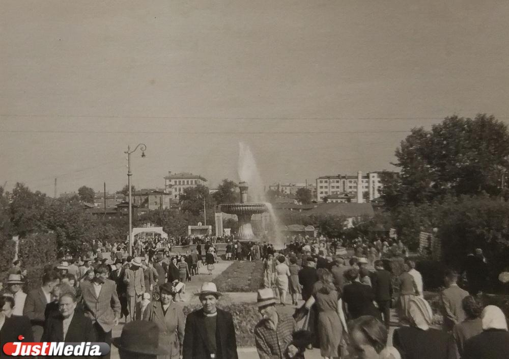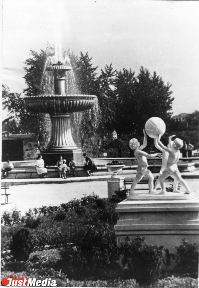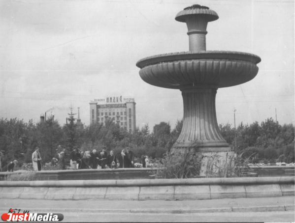 «Прямо напротив ворот – большой фонтан-чаша. Ее диаметр – 6 метров. Вес фонтана 48 тонн. Он отлит из чугуна на заводе Уралхиммаш. Бьет 26 струй. Четыре центральных достигают высоты в четыре метра. Вода взлетает вихрем брызг, а затем стекает сверкающим каскадом из чаши к подножию. Сделана электрическая подсветка», - говорится в материале «Уральского рабочего» от 9 июля 1953 года.