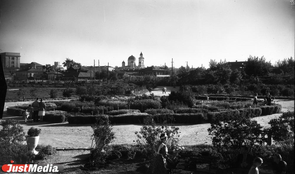 Ограждение парка, здание и другие объекты зеленого уголка в центре Свердловска строили пленные немцы. «Дендрологический парк-выставка» был открыт 4 марта 1948 года. На центральной площади вместо оранжереи был установлен памятник Иосифу Сталину. Правда, никаких письменных подтверждений этого, кроме фото и слов местных жителей, нет. Там, где планировался фонтан, разбили цветник.