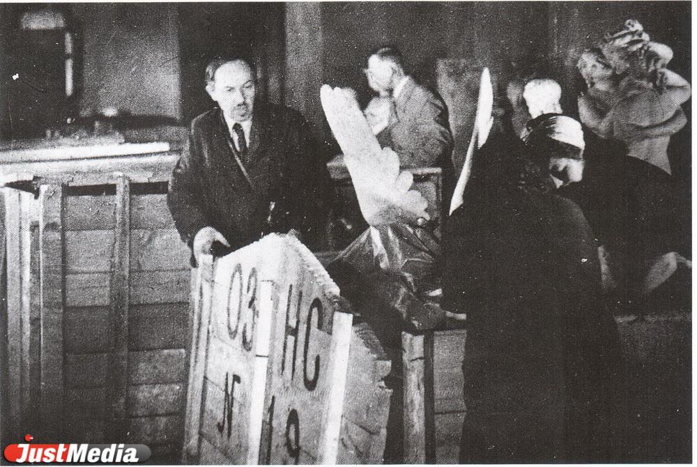 | Контрольное вскрытие ящиков, Свердловск. ФОТО: Государственный Эрмитаж, Санкт-Петербург |