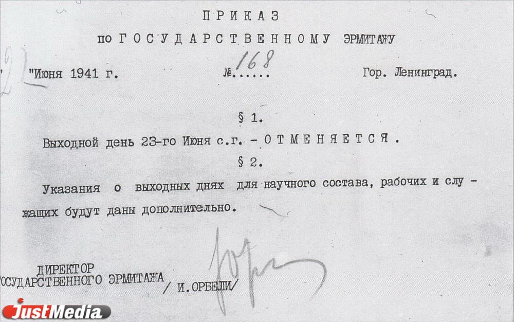 | Приказ по Государственному Эрмитажу. Фото: из каталога к выставке «Эрмитаж спасенный», СП, 1995 г. |