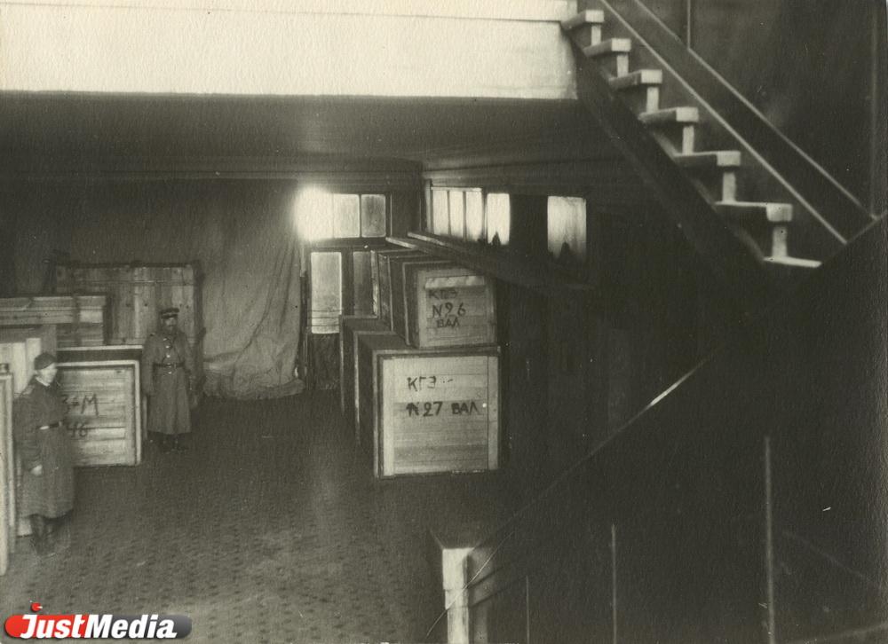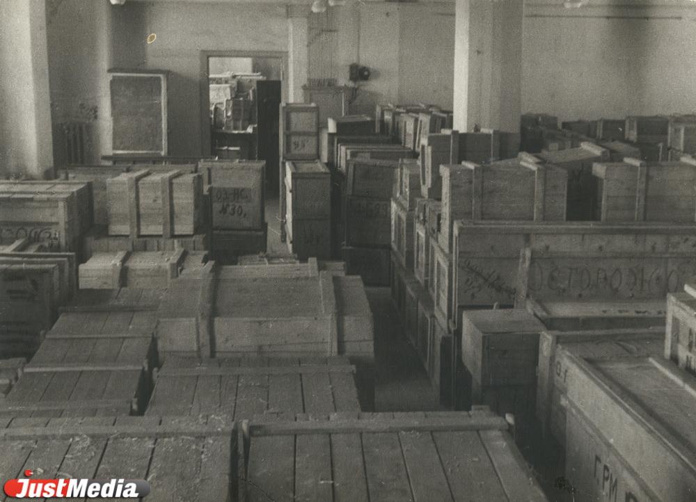 Изначально планировалось разместить прибывшие из Ленинграда экспонаты в Свердловской картинной галерее по адресу Вайнера, 11, так как это было музейное пространство, в котором был необходимый температурный и влажностный режимы для хранения музейных предметов. В здании были железобетонные перекрытия, которые способны выдержать большой груз. На втором этаже музея разместили ящики с живописью, на первом и в подвале – ящики со скульптурой. Ящики с произведениями искусства ставили друг на друга. Однако, даже при таком размещении, стало понятно, что этого пространства недостаточно.