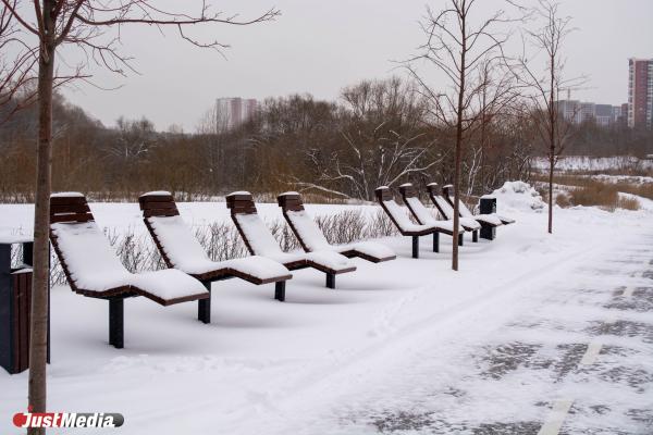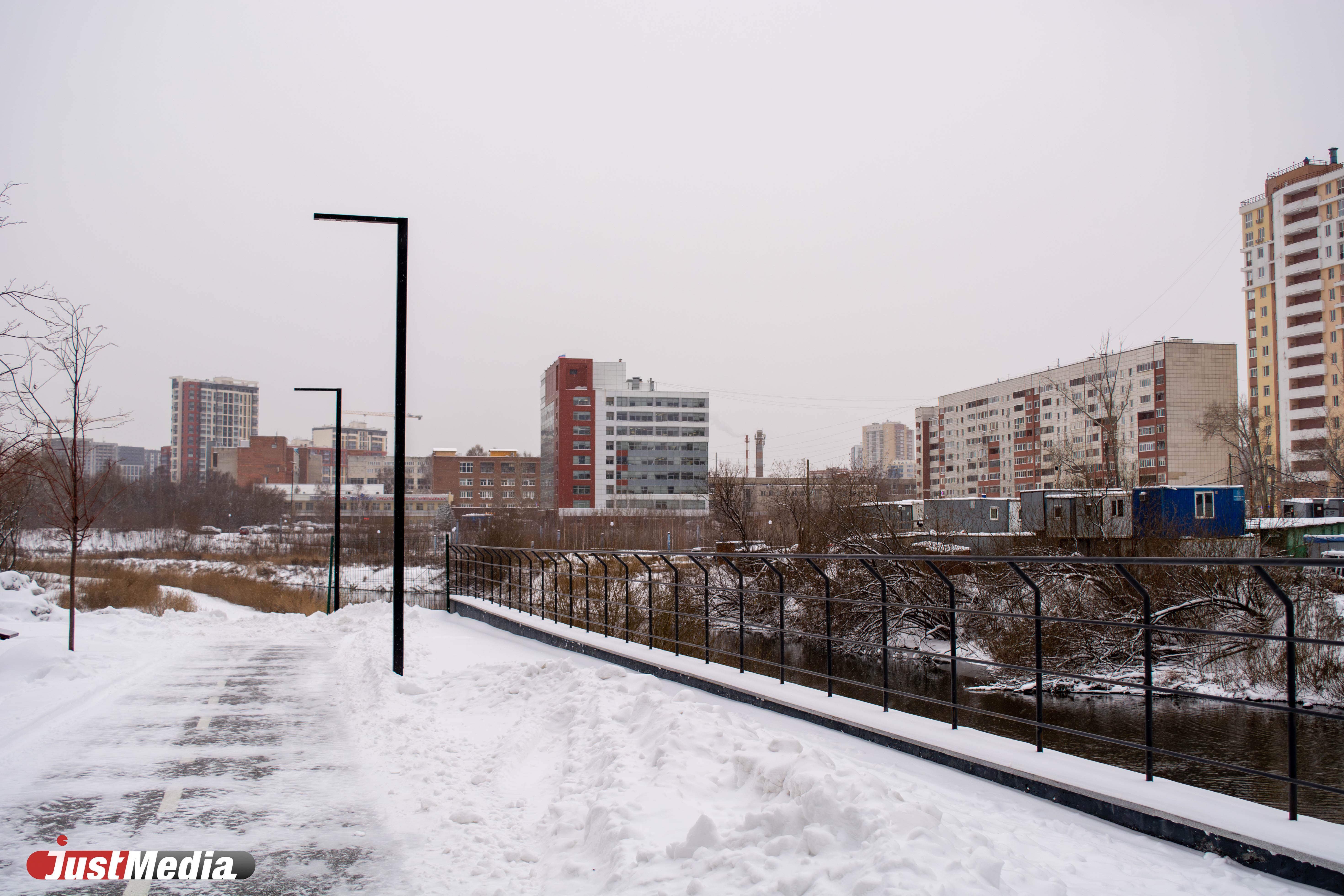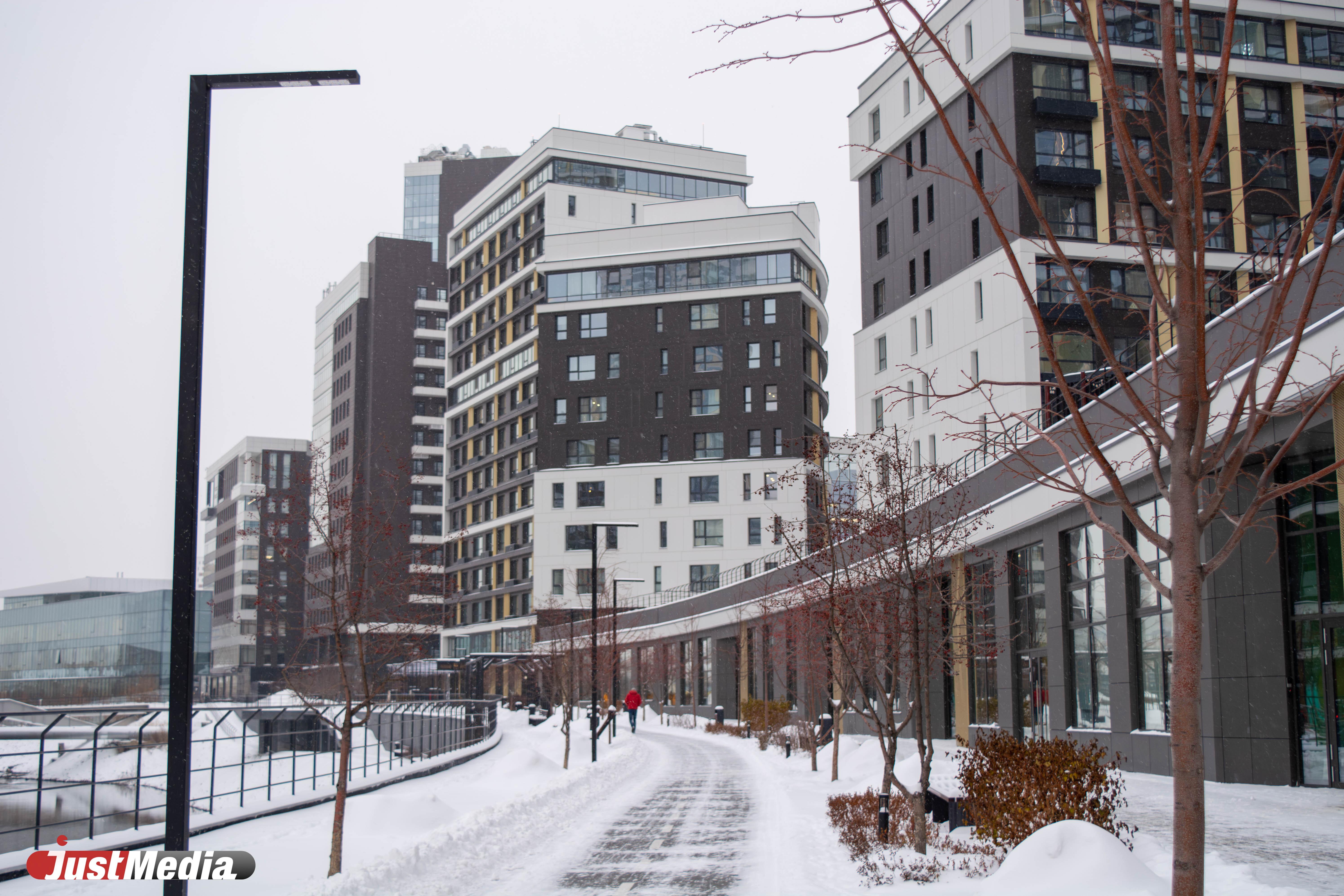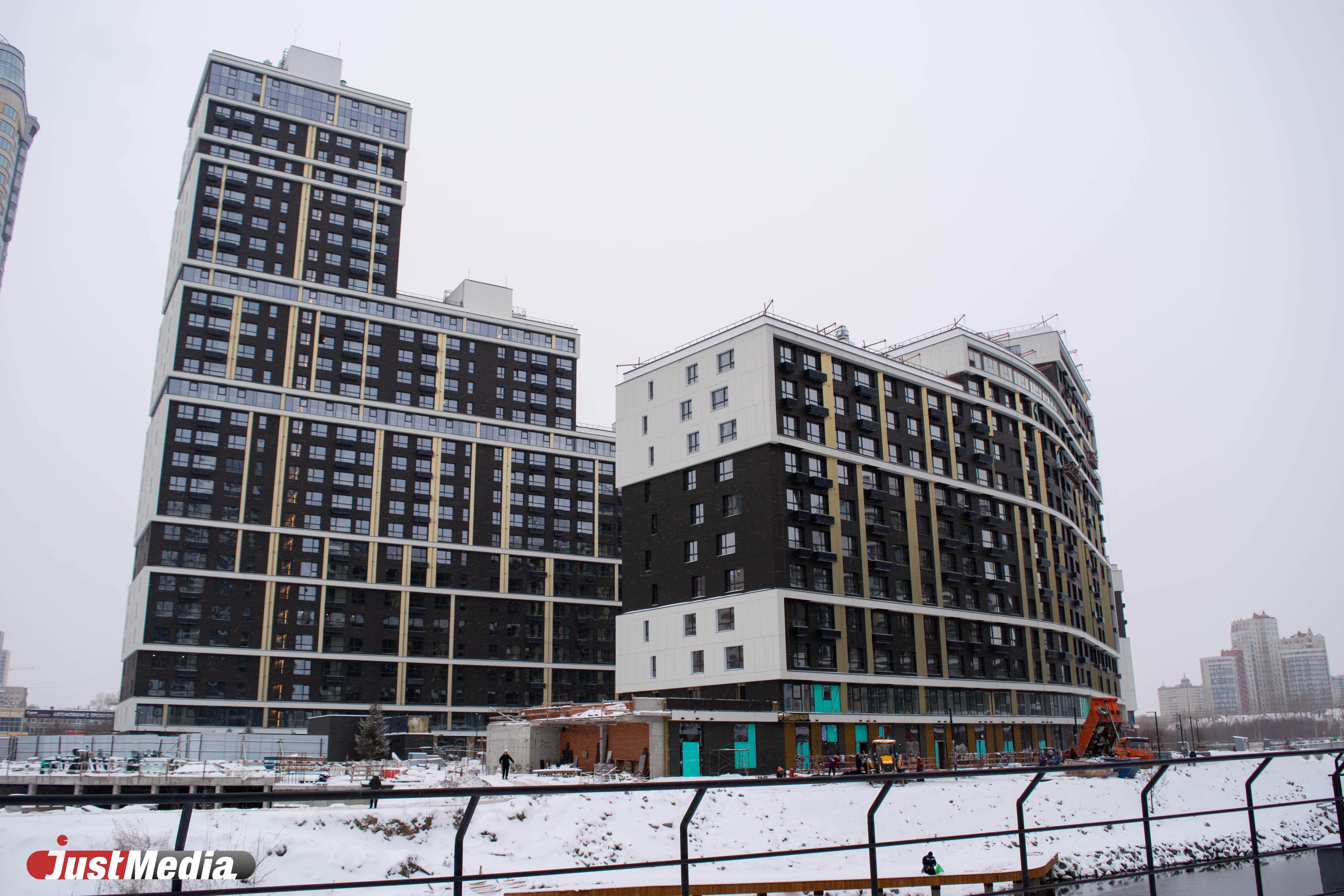Виды на город – одно из преимуществ ЖК. У некоторых окна выходят на парк, у кого-то на Исеть, а кому-то досталась квартира с видом во двор. Дом расположен «колодцем», поэтому есть подозрение, что солнца хватает тут не всем. Ну и стройка на противоположном берегу реки еще не заканчивается. Вполне вероятно, что целыми днями резиденты слышат звуки забивающихся свай или крики строителей.
