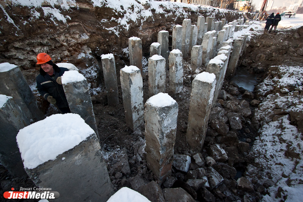 «Сейчас продолжаем погружение призматических свай, потом перейдем к буронабивным,— рассказывает начальник участка ООО «Свердловскмостострой» Олег Гильдман.— Грунт непростой — торф сменяется скалой. Правда, скала залегает глубже, чем мы рассчитывали, поэтому пришлось вместо шестиметровых свай использовать десятиметровые».