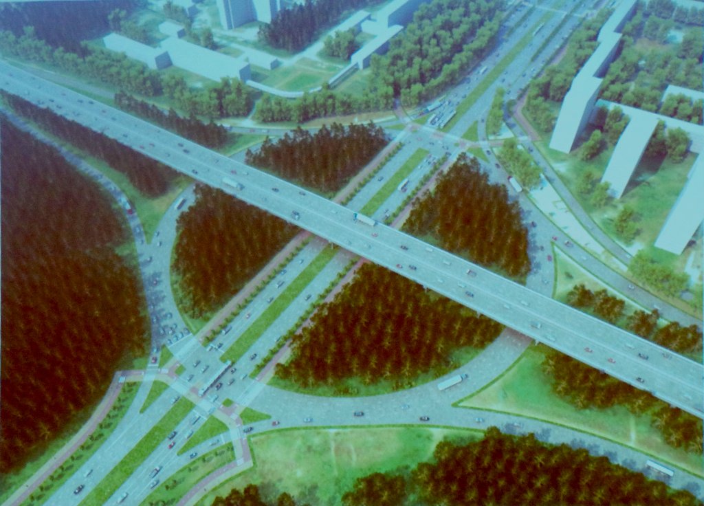 Концепцию развязки тоже утвердили на Транспортном совете. Она будет состоять из кольца и эстакады. Светофорное кольцо будет предназначено исключительно для левых поворотов, а магистраль Серафимы Дерябиной будет соединена сквозным проездом с улицей Вильгельма де Геннина. Проезд будет восьмиполосным, две из полос будут предназначены для общественного транспорта. Объездная пройдет по 440-метровому мосту над развязкой.