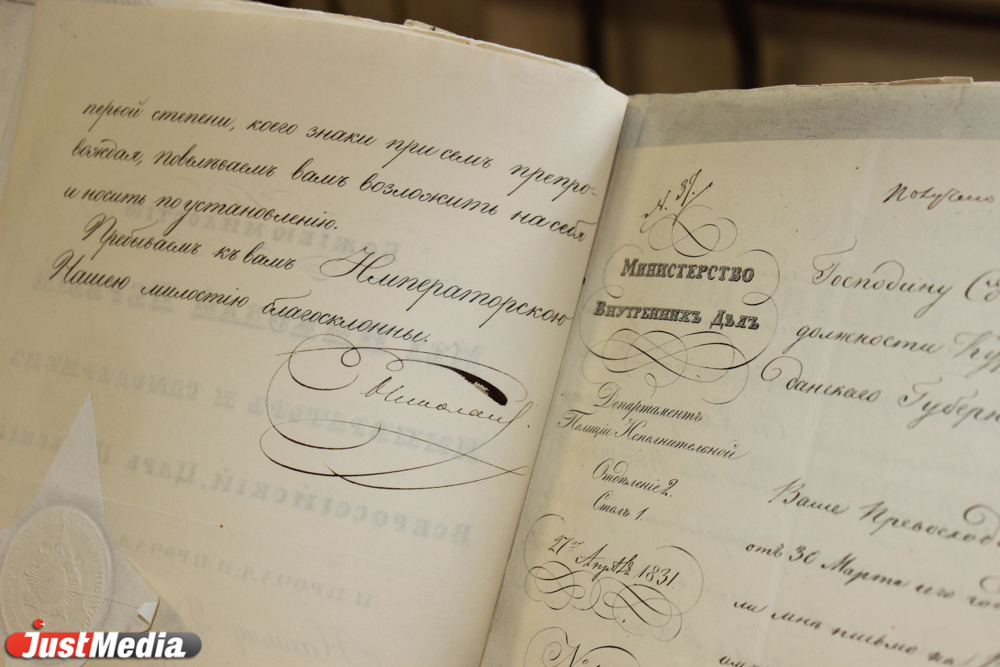 Корреспондент JustMedia проник в Государственный архив Свердловской области и прикоснулся к подлинникам документов, оставивших на себе след династии Романовых. Сотрудники архива расщедрились не на шутку и презентовали прессе оригиналы новых находок, связанных с именами царей. Так JustMedia очутился в читальном зале архива, где взглянул на уникальные записи с вековой историей.
