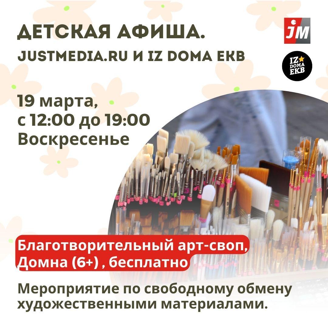 Мероприятие по свободному обмену художественными материалами (краски, фломастеры, карандаши, бумага, холсты и др.). Приглашаются все, у кого накопилось много неиспользуемых художественных материалов, их можно отдать на благие цели и взять взамен что-то интересное для себя.