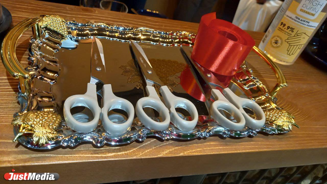 На входе мы встретили парикмахера с татуировками и наголо выбритыми висками, сооружающего что-то модное на голове у первого клиента. Рядом был праздничный поднос с ножницами и красной лентой для областных чиновников, приехавших на открытие.