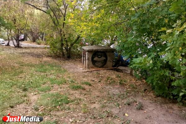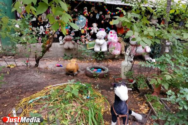 На улице Бажова также можно испытать разной степени эмоции от одного двор-арта. Жительница одного из домов собирает детские игрушки и размещает их в своем дворе в виде вот такой незамысловатой композиции.