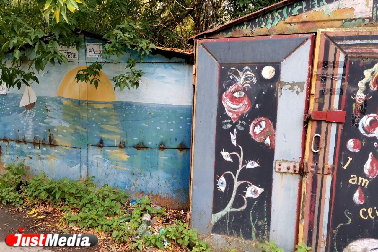 На Бажова, 91а по-прежнему работает один из салонов красоты первого коммерческого бьюти-амбассадора Екатеринбурга – Владимира Мотчаного. По инициативе салона местные живописцы расписали стоящие рядом гаражи, задолго до того, как в Екатеринбурге появился тренд на стрит-арт и уличные фестивали художников.