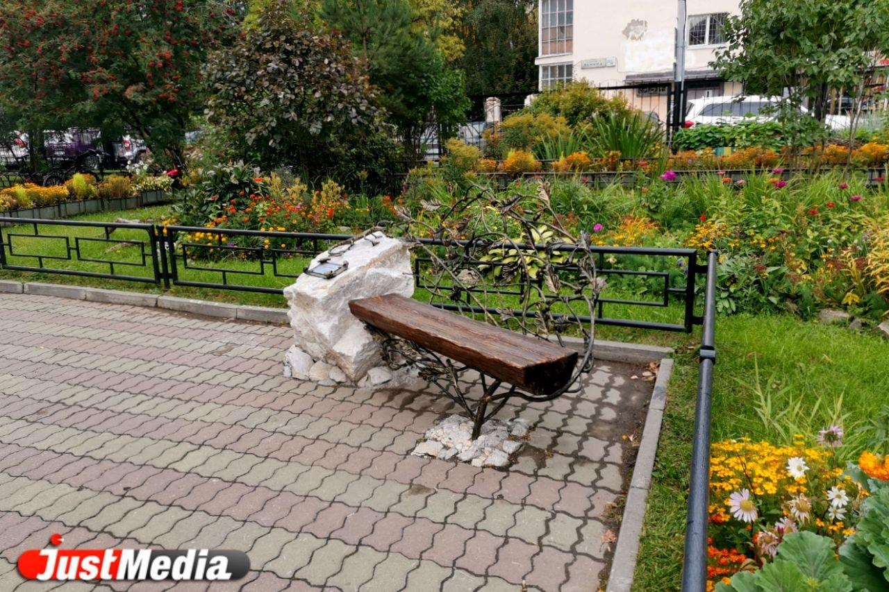 Мемориальная плита П. П. Бажову, расположенная на стене здания Бажова 91, появилась в 1979 году – к столетию писателя, и первые пару лет – пока скульптор Владимир Егоров добивался в Москве бронзы для нее – была сделана из гипса.