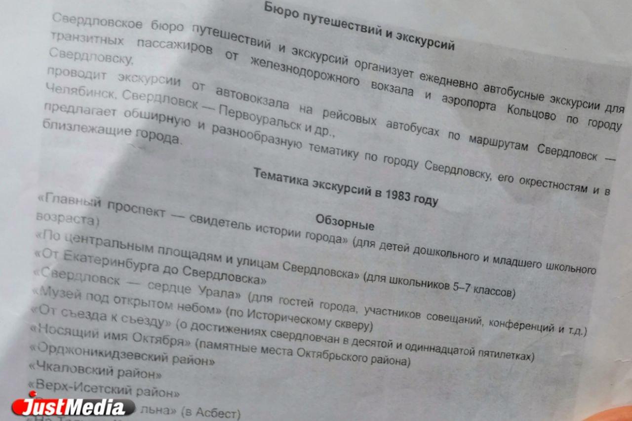 Напротив школы по-прежнему, как и 40 лет назад, висит вывеска Свердловского бюро путешествий и экскурсий.