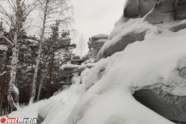 Добраться до скал можно как со стороны поселка Исеть, так и со стороны озера Песчаного. При это придется пройти не только вдаль, но и вверх – скалы расположены на вершине невысокой горы.
