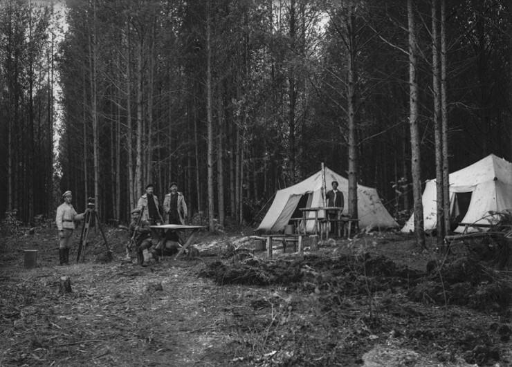 «Прошлой осенью, когда на «Конный» полуостров даже не было дороги через болото и попасть на него можно было только на лодках, туда явилась первая изыскательная партия в 4 человека. Были раскинуты две красноармейско-походные палатки и начались первые скромные работы: изыскание грунта, планировка полуострова и прочее», — говорится в статье газеты «Уральский рабочий» от 23 мая 1923 года.