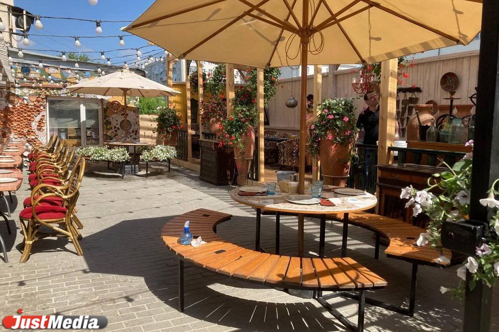 Лето наступило в этом году на месяц раньше. Это радует, и весь город вышел согреться под лучами жаркого майского солнца. Но кафе и рестораны оказались к причудам уральской погоды не готовы, они в темпе начали возводить и облагораживать свои летние веранды. Ведь никто не хочет сидеть в душных залах.