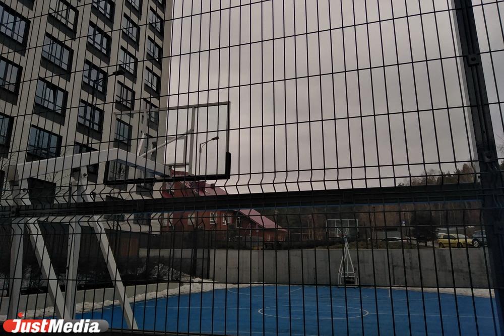 Житель признается, что территория вокруг домов небольшая. Но все-таки двор оказывается просторным. У каждого дома есть своя детская площадка, на одной из них постелен очень мягкий искусственный газон. Для детей есть не только типичные горки, но и настоящие аттракционы. Вместе отмечаем, что если были бы младше, точно бы были рады. Но взрослым на территории ЖК совершенно нечего делать. Разве что смотреть на набережную с обзорной площадки и играть в баскетбол на крутой площадке.