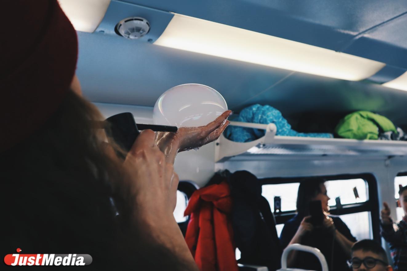 Далее в каждом вагоне на протяжении всей поездки происходило мини-представление длительностью около 7 минут с участием разных персонажей: это небольшие сценки, которые сопровождались играми, экспериментами, угощениями, викторинами, шоу мыльных пузырей и другими активностями. Также дети и их родители могли сфотографироваться с любимыми героями и животными (с нами в поезде путешествовали сова и большая змея). Взрослые участвовали в активностях вместе с детьми.