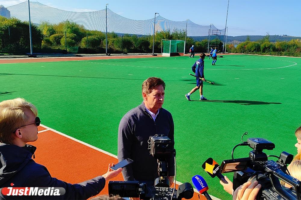 Мы заезжаем на территорию Чкаловского физкультурно-оздоровительного комплекса. Здесь в парке-стадионе Химмаш на Дагестанской, 1 воспитанники спортивной школы олимпийского резерва №18 занимаются хоккеем на траве. Это одна из двух площадок учреждения — вторая находится на Санаторной, 24.