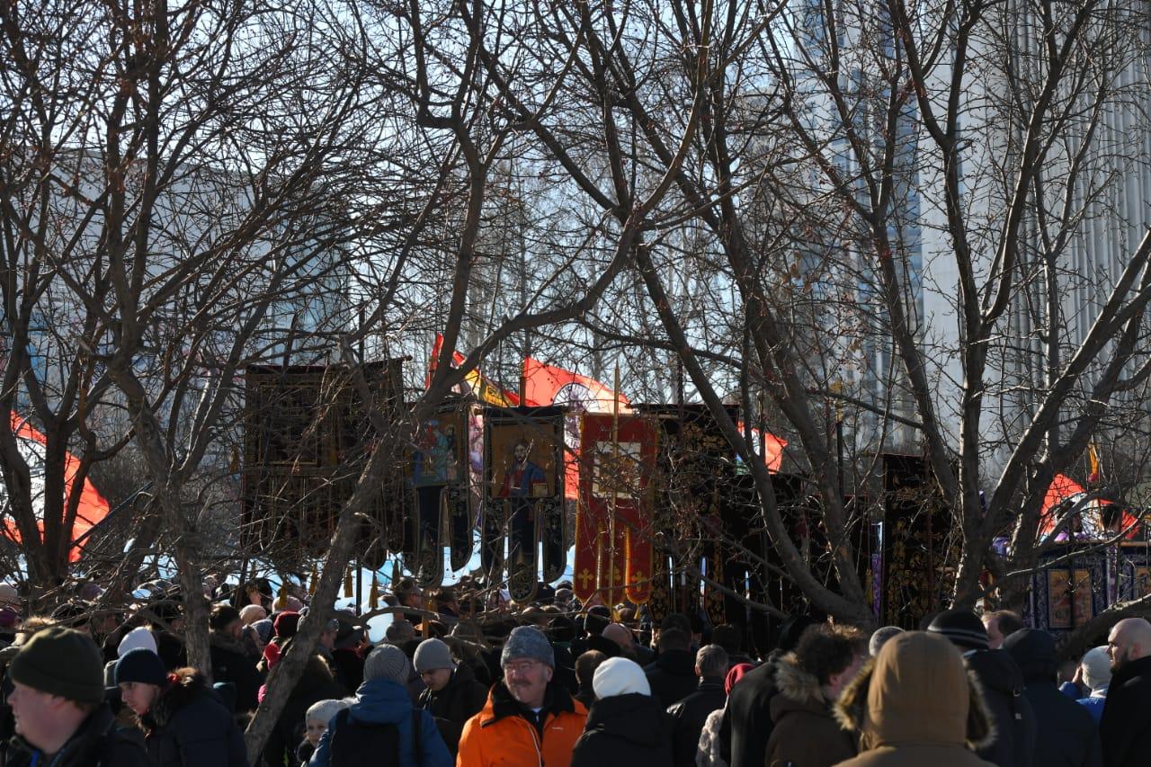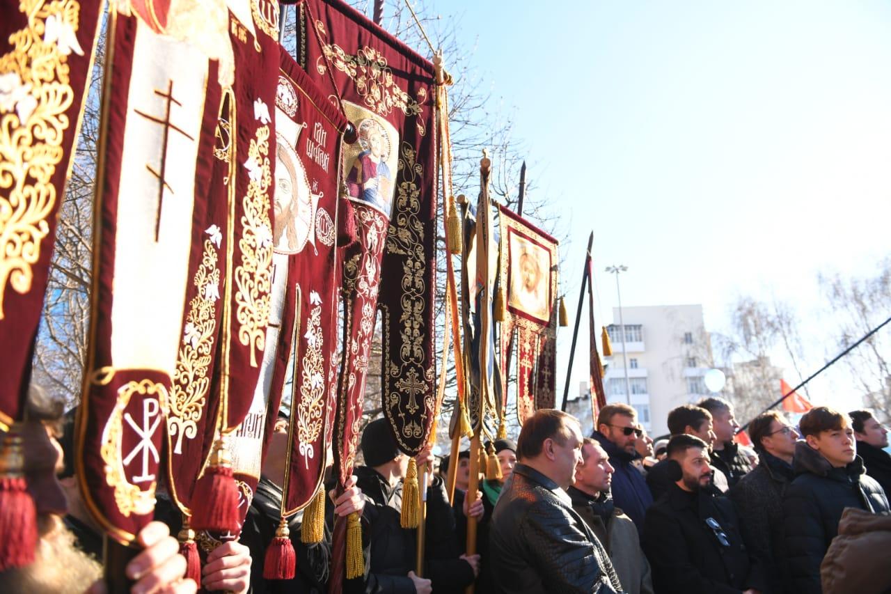 Молебен на Октябрьской площади собрал 10 000 человек.