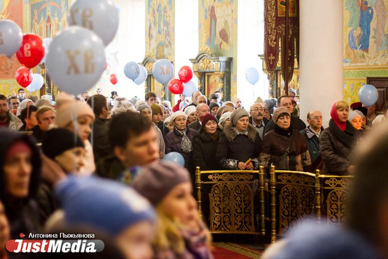 Верующие, ожидающие прибытия благодатного огня из Иерусалима, собрались у Свято-Троицкого кафедрального собора еще днем, в 14:00. Поучаствовать в богослужении съехались со всей области. Среди собравшихся также были чиновники, бизнесмены и депутаты. У собора можно было увидеть бизнесмена Андрея Симановского, депутатов думы Екатеринбурга Дмитрия Сергина и Тимофея Жукова, а также министра здравоохранения Андрея Цветкова. Первым митрополит Екатеринбургский и Верхотурский Кирилл поздоровался с губернатором Свердловской области Евгением Куйвашевым.
