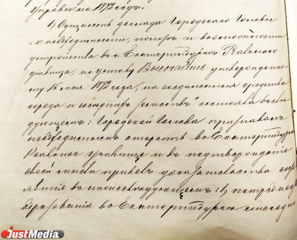 «Екатеринбургские реалисты с увлечением занимались геометрией, решали трудные задачи «на конкурс», до 12 ночи засиживались в физической лаборатории, зубрили французский. После семи лет учебы питомцы реального разъезжались в столицы, поступали в горный, телеграфный или технологический институты, Петровско-Разумовскую академию, Московское техническое училище», — сообщает Официальный портал Екатеринбурга.