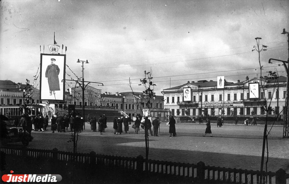 Портрет Сталина на площади 1905 года в Екатеринбурге. ФОТО: Государственный архив СО