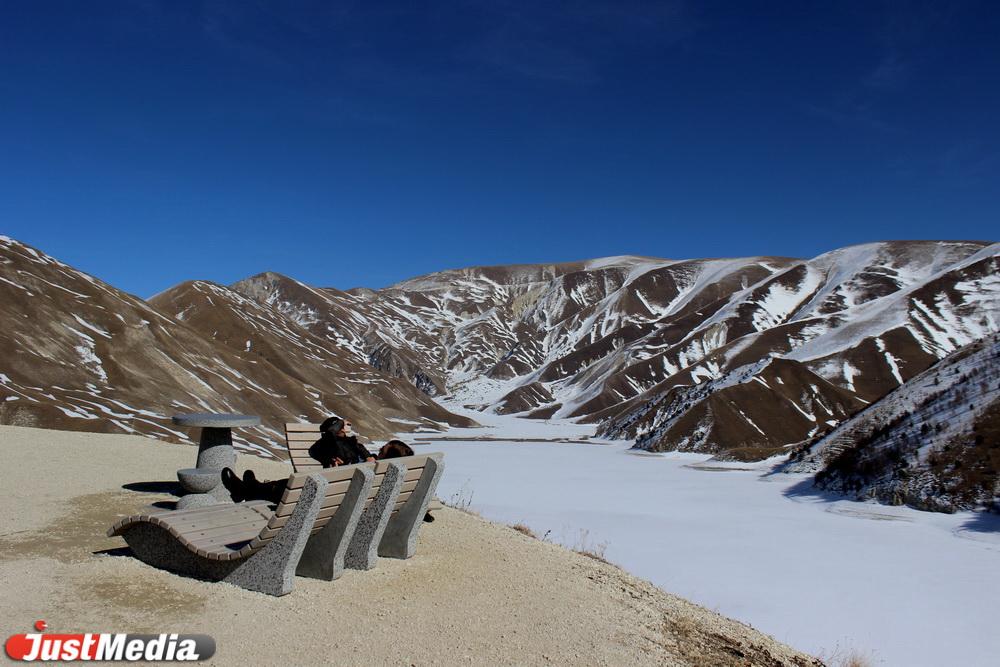 Высокогорное озеро Кезенойам (1854 метра над уровнем моря). На случай, если едете туда зимой — прихватите коньки, и будет вам второй Байкал.