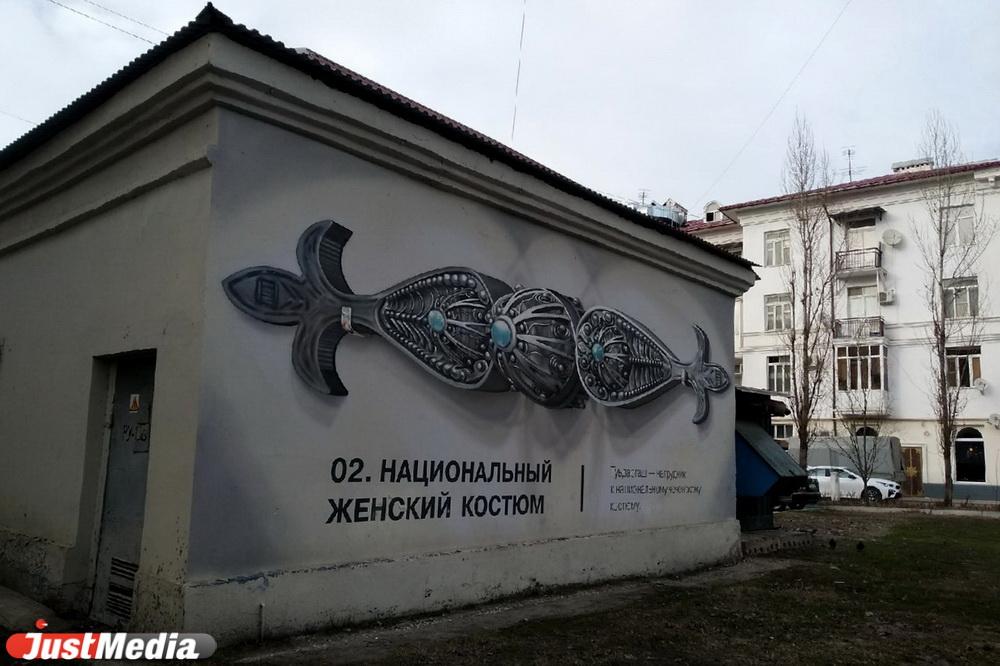 В центре Грозного можно увидеть работы стрит-арт художников из Екатеринбурга. В одном из дворов на Проспекте Путина команда SPEKTR нанесла на стены зданий элемент женского народного костюма (туьдаргаш) и древний национальный инструмент дечиг пондар в технике 3D-граффити.