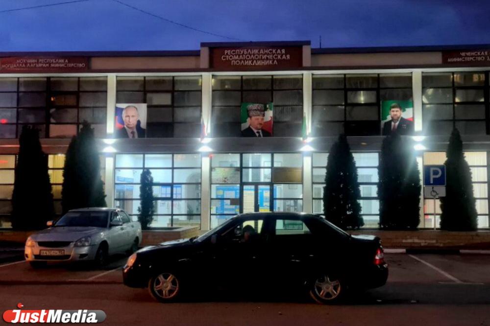 На всех государственных учреждениях Грозного висят портреты Ахмата Кадырова и Рамзана Кадырова. На многих из них компанию им составляет Владимир Путин.