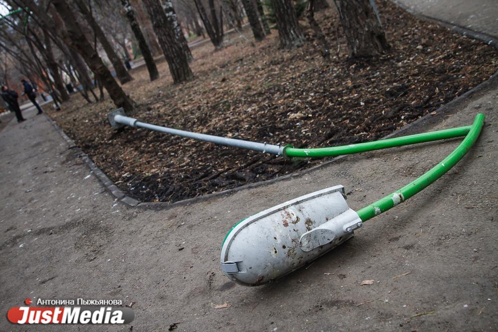 Идем дальше – под ногами птичий помет, на скамейках – тоже. Замечаю поваленный фонарь – поясняют, что его просто еще не установили. Сотрудник администрации говорит, что уборкой парка служба благоустройства города может начать заниматься только после того, как пройдет приемка работ у подрядчика. Представителя компании-подрядчика «Свердловскавтодор» на месте нет – руководство находится на объезде вместе с областными чиновниками. Поэтому точную дату приемки работ узнать так и не удается – зампредседателя общественной организации «Защита природы» Вадим Аверьянов сообщает только то, что это должно произойти на днях.